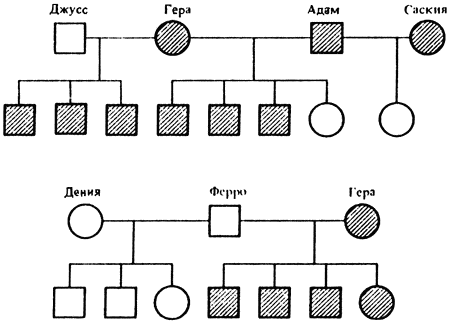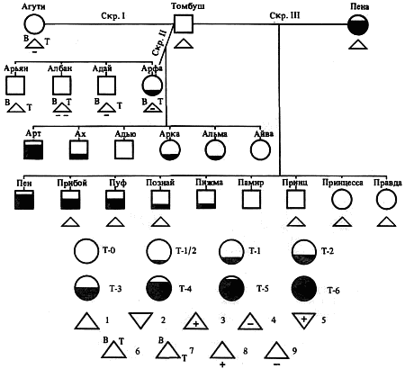 Указанные в рисунке обозначения относятся ко всем родословным.