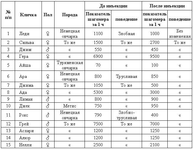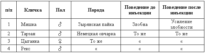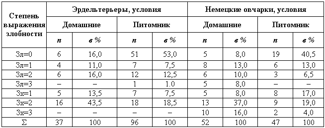 При биометрической обработке по степени выражения активно-оборонительной реакции все собаки были разбиты на три степени выражения этого рефлекса: 1 — незлобные; 2 — злобные без хватки; 3 — злобные с хваткой.