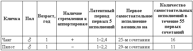 Какой тип наследования был в нашем случае у гибридов гиляцких лаек и немецких овчарок, полного или частичного доминирования возбудимости, является для данной работы не столь актуальным. Для подтверждения рабочей гипотезы важно только, что гибриды оказались более возбудимыми, чем гиляцкие лайки.