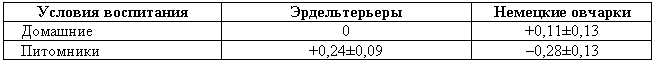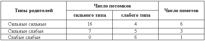Таблица 1. Наследование возбудимости у гибридов гиляцких лаек (отец) и немецких овчарок (мать)