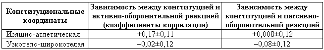 Коэффициент корреляций вычисляется по следующим рядам: для пассивно-оборонительной реакции ряд состоял из 7 классов: от Т=0 (нетрусливые собаки) до Т=6 (максимальная степень пассивно-оборонительной реакции); для активно-оборонительной реакции ряд состоял из 3 классов: Зо, Зл, Зх. Варианты классов Зл и Зх при вычислении коэффициента корреляции объединялись нами в соответствующие группы злобно-лающих и злобно-хватающих собак.