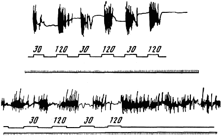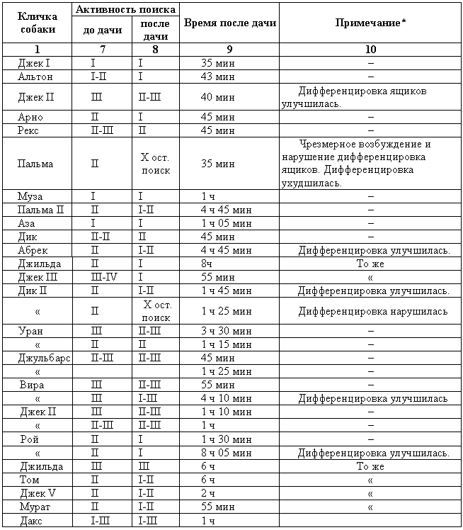Конечно, метод такого определения возбудимости, основанный на субъективной оценке, являлся далеко не безукоризненным по своей точности, но он был возможным в тех условиях, в которых проводилась работа, и, кроме того, освобождал от тормозного влияния на поведение собаки со стороны пассивно-оборонительного рефлекса.