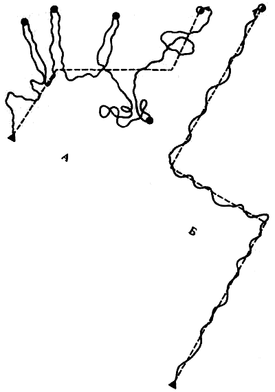 До сих пор, насколько мне известно, работ по наследованию безусловных рефлексов у собак очень мало, несмотря на то что у них имеется большое разнообразие различных реакций поведения. Можно указать на небольшую работу Уитней (Whitney, 1929), в которой исследовалось наследование гона (trail barking) собак. Работа произведена на очень небольшом материале, но все же автор считает, что тенденция к лаю на следу зверя наследуется как доминантный признак. Но, несмотря на то что от скрещивания с гончими всегда рождается лающее на следу зверя потомство, интонация лая, характерная для гончих, не наследуется.