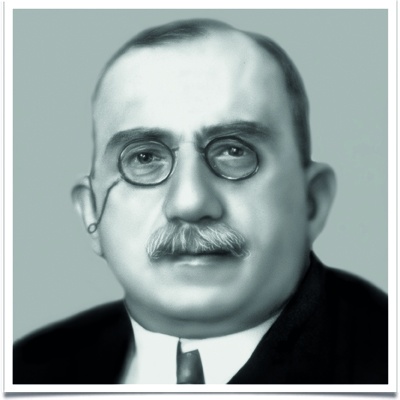 На этом снимке Александр Емельянович Абрамович в пожилом возрасте, смотрящий в сторону и загадочно полуулыбающийся.