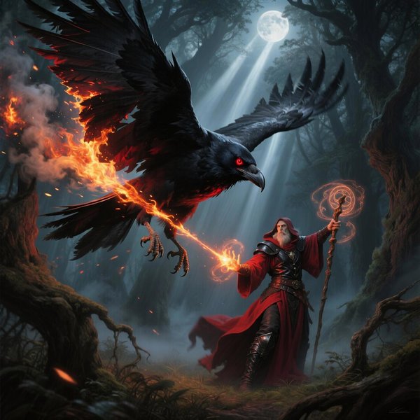 Вожак уже собрался было обрушить топор на наглого посланца, как у входа в палатку внезапно вспыхнуло холодное голубое пламя. В его центре, словно из ниоткуда, возникла высокая худая фигура в чёрной мантии с оттопыренными вверх, словно уши лисицы, наплечниками. Все замерли.