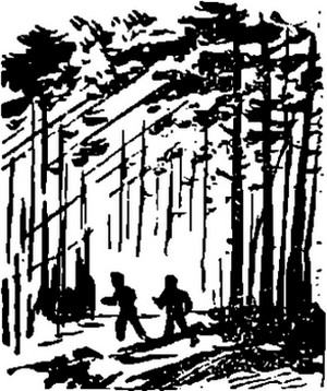 Огневой шквал бушевал здесь в первые дни войны. Наши части, прижимаясь тылами к Сестрорецку, ни за что не хотели отступать дальше, а немецкие войска, опьяненные первыми успехами, лезли напролом. Лес несколько раз переходил из рук в руки, по нему нещадно били сотни орудий с той и другой стороны. Наконец, обескровленные фашисты вынуждены были остановиться и закопаться в землю, прикрыв свои головы бревенчатыми накатами и ощетинившись в нашу сторону пулеметами.