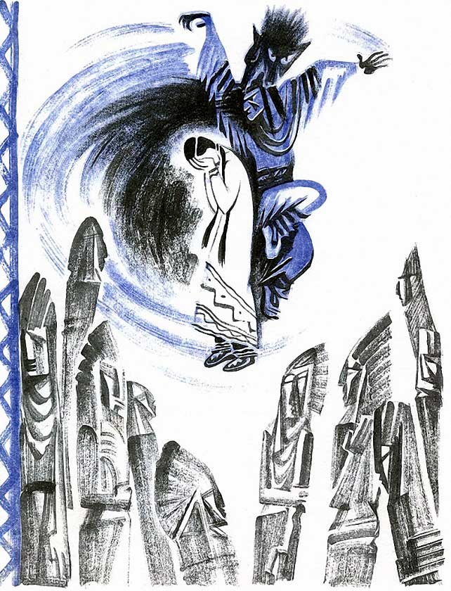 Серая птица вылетела из вигвама — крылья её больше не шумели: они обуглились и съёжились от огня.