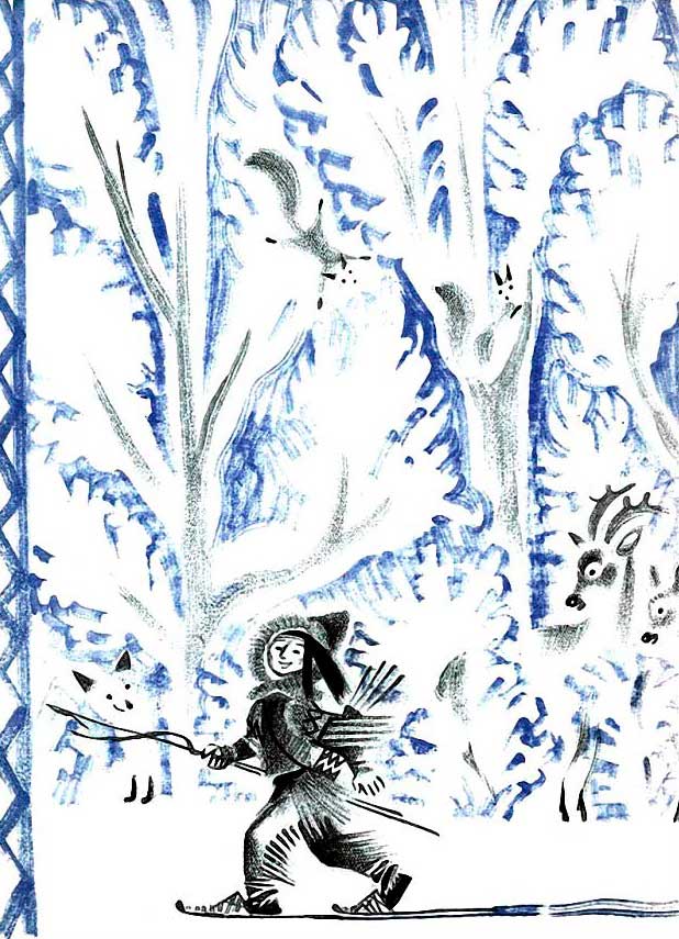 Когда же солнце проглянуло сквозь толщу еловых веток, юноши приняли свой прежний облик и продолжали путь.