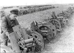 17. Танкисты и артиллеристы из состава сводного отряда Быкова перемещают 76-мм пушку Ф-22 образца 1936 года. Район реки Халхин-Гол, май 1939 года (АВЛ).