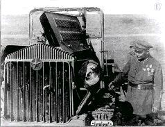 18. Старший лейтенант Д.Г. Можайский ставит боевую задачу пулеметчику А.П. Додину. На заднем плане легкий бронеавтомобиль ФАИ из состава 7-й мотобригады Красной Армии. Халхин-Гол, июль 1939 года (АВЛ).
