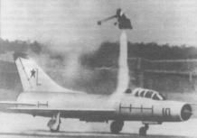 Кроме того, отдельными приказами МАП задавался для всех истребительных ОКБ целый ряд экспериментальных работ по повышению потолка самолетов. Именно этим объясняется очередной всплеск интереса в авиации к жидкостным ракетным двигателям в конце 50-х гг. Для ОКБ-51 задание предусматривало подвеску на базовый перехватчик в качестве ускорителей двух типов ЖРД: РУ-013 разработки ОКБ-1 МАП (главный конструктор Л.С.Душкин) и СЗ-20, созданный в ОКБ-3 МОП* (главный конструктор Д.Д.Севрук). Одновременно рассматривался и вариант увеличения тяги за счет впрыска воды в форсажную камеру.