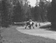 Другим важным средством, позволяющим надеяться на эффективное отражение нападения, стала для страны развитая сеть авиабаз и посадочных площадок, на которой в случае чего можно было бы выполнить рассредоточение и эффективный маневр силами. Для этой цели предназначены и довольно многочисленные участки автомобильных магистралей. Шведы давно стремились вывести породу самолетов с низкой потребностью в наземных средствах обслуживания, и при разработке Грипена этому было уделено особое внимание. Не менее важную роль в формировании фамильных черт шведских боевых самолетов сыграла и всеобщая воинская обязанность, на основе которой комплектуется армия страны. Маленькая Швеция имеет возможность оплачивать труд профессионалов только на действительно важных технических должностях, поэтому большинство аэродромного персонала составляют малоквалифицированные солдаты срочной службы (типовая команда состоит из одного офицера и пяти рядовых). Чтобы обеспечить при этом необходимый уровень боеготовности, создателям шведских самолетов, наряду с сокращением номенклатуры аэродромного оборудования, приходилось уделять огромное внимание упрощению техобслуживания, подготовки к повторному вылету, увеличению времени наработки на отказ элементов оборудования и т.д.