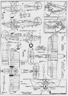 Итак. Верхнее крыло имеет меньший на 1,7 мм размах, что можно откорректировать, сделав новые законцовки. Еще один дефект -неверная разбивка нервюр на участке между элеронами. Для его iустранения – по 0,8 мм в каждую сторону удлинить консоли нижнего крыла, переразбить нервюры и увеличить зализы между крылом и фюзеляжем. Если приложить заготовку фюзеляжа к чертежу, базируясь по кабине и водяному радиатору, видно следующее: верхний контур носовой части необходимо чуть-чуть доработать; участок гаргрота между фонарем кабины и килем следует сделать более выпуклым; аналогично следует доработать и нижний контур фюзеляжа – от радиатора до стыка с рулем направления; зону воздухозаборника двигателя стоит сделать заново. Еще одна группа дефектов -слишком маленькие обтекатели пулеметов и неточности расшивки. Руль направления проще сделать заново, т.к. он меньше по высоте на 0,7 мм и по хорде на 0,8 мм. Горизонтальное оперение точно по размаху, но хорды стабилизатора меньше, чем нужно, и его также лучше сделать заново. Диски колес совершенно непохожи на прототип. Обтекатели колес меньшего размера, чем нужно. Общий недостаток шасси – невозможно сделать вращающиеся колеса. Интерьер кабины пилота следует сделать заново. Остекление фонаря в целом неплохое, но требует полировки и новой расшивки. И последнее. На основе данной модели несложно сделать машину 3-й серии, для чего надо срезать грот от фонаря до киля и согласно чертежу изготовить новый фрагмент фюзеляжа из кусочка пластика.