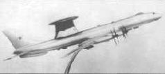 В 1958 г. перед туполевским ОКБ-156 была поставлена задача создать самолет ДРЛО Ту-126, предназначенный для действий в системе ПВО страны. Как сам самолет, так и его радиотехнический комплекс создавались в русле радикального совершенствования всей системы ПВО, одновременно с разработкой комплекса дальнего перехвата Ту-28-80 (см. «АиВ», № 2'97). Обе темы задавались одними и теми же Постановлением Совета Министров СССР № 608-293 от 4 июля 1958 г. и приказом ГКАТ № 211 от 17 июля. В этих документах были определены следующие требования к самолету и комплексу: продолжительность полета – 10-12 часов; практический потолок – 8000-12000 м; дальность обнаружения воздушных целей в верхней полусфере для цели типа МиГ-17 – 100 км, Ил-28 – 200 км, ЗМ -300 км; дальность передачи информации – 2000 км. Систему Ту-126 требовалось предъявить на совместные летные испытания в первом квартале 1961 г.