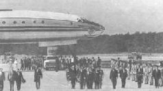 Появилось облачко белого дыма, когда колеса обожгли взлетную дорожку, и визит, который никто не мог бы представить еще полгода назад, начался… Сам самолет был свидетельством мощи. Это самый крупный воздушный лайнер в мире, настолько широкий, что не может поместиться на обычной рулежной дорожке, настолько высокий, что требует специального алюминиевого трапа, настолько большой, что его нельзя развернуть на главной взлетной дорожке аэродрома Эндрюс, вследствие чего фотографам пришлось ждать, пока г-н Хрущев совершал свое памятное вступление на землю Соединенных Штатов вне поля их зрения, по другую сторону от корреспондентской площадки».