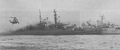Sea King makes an observation sortie around the crippled frigate HMS Ardent