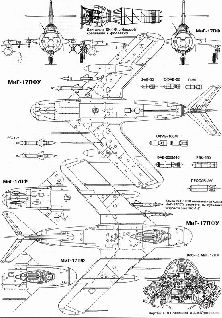 Самолет-мишень М-17Ф, созданный на базе МиГ-17Ф. Перед килем – обтекатель рулевых машинок. Под фюзеляжем – блок аппаратуры радиоуправления. Под законцовками крыла – фотоконтрольные приборы