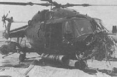 The Lynx helicopter damaged by an Argentinian bomb right on the HMS Broadsword flihgt deck
