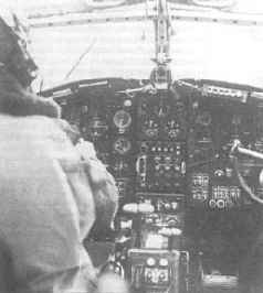 Штурвальная колонка и центральный пульт в кабине летчиков