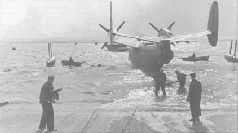 Бе-бСС на войсковых испытаниях в Поти, 1958 г. Прожектор поднят, установлен съемный трап для подбора пострадавших