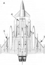 Versions of EF-2000 armaments for different missions: A) Air Interdiction B) Close Air Support
