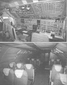 АН- 124-100 crew's workplaces: pilots (left), flight radio operator and navigator (right), 1st and 2nd flight engineers (below)