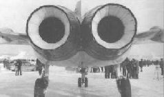 Для достижения взлетной тяговооружен-ности не менее единицы суммарная тяга двигателей должна быть в районе 36000 кгс, или около 18000 кгс каждый. При таком соотношении размерностей самолета и двигателя говорить о «принципиально другой» дальности полета не приходится. Скорее всего, основной упор при создании машины делался на сверхзвуковой крейсерский полет, и речь идет об увеличении дальности только на этом режиме. Эту мысль подтверждает и общая схема самолета с ПГО, которая, по сравнению с нормальной схемой, при равной степени неустойчивости на дозвуковых режимах полета обеспечивает меньший сдвиг фокуса и, соответственно, меньшие потери на балансировку на сверхзвуковых скоростях.