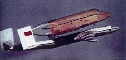 В сложившейся обстановке создатели космических систем были вынуждены возложить свои надежды на проект ВМ-Т – модификацию стратегического бомбардировщика ЗМ, построенного под руководством В.М.Мясищева еще в середине 1950-х годов, способную «закрыть проблему» хотя бы на период постройки первого комплекса «Энергия-Буран». Модификация заключалась в увеличении прочности серийного самолета, оснащении его узлами внешней подвески и двухкилевым оперением, что и обеспечило возможность транспортировки на «спине» самолета длинномерных грузов. Самолет получился напряженным по многим прочностным и аэродинамическим параметрам – очень уж велики оказались для него размерынекоторых космических грузов. Например, диаметр центрального блока носителя «Энергия» превышал диаметр фюзеляжа ВМ-Т в 2,5 раза. В итоге отдельные полеты (а всего оба построенных экземпляра ВМ-Т за 1982-88 годы выполнили 150 рейсов на космодром по перевозке с заводов-изготовителей компонентов системы «Энергия-Буран») оказались связаны с риском и завершались благополучно зачастую только благодаря мужеству и профессионализму экипажей. К тому же, ВМ-Т не могли перевозить всей требуемой номенклатуры грузов. В частности, «Буран» они могли поднять только без вертикального оперения и внутреннего оборудования, поэтому и выполнить сброс его в воздухе, как «Боинг-747» сбрасывал «Шаттл», не представлялось возможным. Да и возраст самолетов, выпущенных за четверть века до описываемых событий, постоянно напоминал о необходимости разработки им срочной замены.