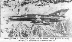ночных ударах, подсвечивая район налета «люстрами» - осветительными авиабомбами САБ-100 и САБ-250. Они участвовали в атаках и поиске караванов с оружием, особенно по ночам (если днем досмотр вели поисковые группы на вертолетах, то скрывавшийся в темноте караван вез явно не изюм, и его судьба решалась однозначно…). Экипажи МиГ-21Р, лучше других знавшие, где искать цель, вели и «свободную охоту» - самостоятельный поиск и уничтожение противника. В этом случае они несли подвесные баки, две РБК-250-275 или 2-4 НАР С-24.