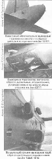 Ан-12Б (1963 г.) В отъемных частях крыла сделаны кессон-баки (общая емкость баков доведена до 19500л). Для автономного запуска двигателей и питания бортовой сети до высоты 1000 м в левом обтекателе шасси установлен турбогенератор ТГ-16. Триммер руля направления увеличен, два задних бомбодержателя сняты, добавлено рабочее место борттехника. Для погрузки несамоходной техники массой до 8 т лебедки БЛ-52 заменены на БЛ-1500.