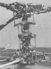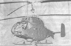 заказчиков привлекали преимущества выбранной конструкторами соосной схемы НВ. Прежде всего, она обещала минимальные габариты машины (что чрезвычайно важно в стесненных условиях корабля), устойчивость на взлете и посадке, более рациональное использование мощности двигателей*, да и более простую технику пилотирования. Однако такая схема имела и ряд недостатков: сложность конструкции трансмиссии и системы управления, снижение к.п.д. НВ из-за их взаимного влияния, опасность схлестывания лопастей. Поэтому винты пришлось значительно разнести по высоте, а вместо обычной втулки применить весьма сложную и громоздкую колонку НВ. Это изрядно увеличило лобовое сопротивление, но для противолодочника, до 30% полетного времени проводящего в режиме висения, было вполне терпимо.