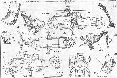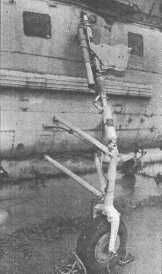Посему эволюция шасси была длительной. Вначале основные стойки перенесли почти на метр назад - исчез опрокидывающий момент на хвост, а с ним уменьшилась и вероятность возникновения з.р. Затем основные стойки типа "медвежья лапа" (см. чертеж) заменили на пирамидальные. З.р. теперь возникал реже, приобретал более легкие формы, но не исчезал. Наконец их сделали двухкамерными - с последовательно соединенными амортизаторами высокого и низкого давления. Первый поглощал энергию удара при посадке, а второй собственно и "давил" з.р., демпфируя колебания перед отрывом или в момент касания палубы. В сочетании с некоторым увеличением жесткости фюзеляжа и рядом усовершенствований НВ "всего" за четыре года земной резонанс был побежден.