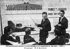 В начале 60-х гг. Министерство обороны СССР поставило перед авиапромышленностью задачу создать комплекс воздушной транспортировки межконтинентальных баллистических ракет - основы наступательного ядерного потенциала Советского Союза. Согласно замыслу, спецгрузы (ракета, стартовое оборудование и пр.) должны были доставляться самолетом на ближайший к месту старта аэродром, а далее - вертолетом непосредственно к шахтной пусковой установке. Так как параметры ВТ-22 во многом соответствовали поставленной задаче, разработку такого самолета поручили ОКБ О.К.Антонова*. При этом армия хотела получить полноценный стратегический ВТС, способный транспортировать не только МБР, но и всю военную и инженерную технику, перевозимую по железной дороге. Народному хозяйству также требовался самолет для доставки крупногабаритных грузов, в том числе в осваиваемые регионы Сибири, Крайнего Севера и Дальнего Востока, куда перевезти их другим путем без разборки было невозможно. Основанием для развертывания работ по новому ВТС послужили Постановление ЦК КПСС и СМ СССР от 13 октября №1117-465 и приказ Председателя ГКАТ от 9 ноября 1960 г. Возглавил работу по самолету, получившему внутризаводской индекс «изделие 100», заместитель главного конструктора А.Я.Белолипецкий, ведущим конструктором был назначен В.И.Кабаев, а ведущим инженером от ГКАТ - В.С.Розанова.
