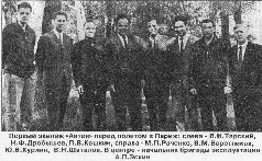 В начале 1964 г. для обеспечения первого вылета «изделия 100» была сформирована специальная, освобожденная от других работ бригада. В ее состав вошли около 100 наиболее опытных специалистов из числа инженерного и летно-подъемного персонала. Отбор летчиков производила комиссия под председательством заместителя главного конструктора по летным испытаниям Героя Советского Союза А.Н.Грацианского. От ЛИИ в ее работе участвовал известный летчик-испытатель М.Л.Гал-лай. Для первого полета отобрали четырех кандидатов: Ю.В.Курлина, И.Е.Давыдова, В.И.Терского и А.Ф.Митронина. Они были направлены в ЛИИ, где произвели несколько полетов на Ту-95 под руководством И.М.Сухомлина - шеф-пилота ОКБ А.Н.Туполева. После этого командиром первого экипажа «сотки» назначили Курлина, а вторым пилотом -Терского, имевших к тому времени налет 7500 ч и 2500 ч соответственно.