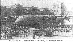 Осенью в связи с неустойчивыми погодными условиями в Киеве первый «Антей» перелетел в Ташкент, где его испытания продолжили. В то время Ташкентский авиазавод, ранее участвовавший в кооперации по постройке первого Ан-22, в соответствии с приказом МАП №119 от 10.06.65 г. развернул серийное производство этих машин. 16 ноября со стапелей завода сошел Ан-22 №01-03 (СССР-56391). Первый ташкентский «Антей» был поднят в воздух 27.01.66 г. экипажем во главе с Курлиным. В течение 1966-67 гг. завод выпустил еще 7 самолетов первой опытной серии. Заводские испытания этих машин в основном проходили на летной базе ОКБ в Гостомеле.