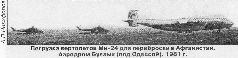 В заключение приведу материалы о боевых действиях вертолетной эскадрильи 50-го ОСАП. Ее командир подп-к Олег Михайлович Кучеренко имел опыт боевых действий на Кубе в 1962-1963 гг. и в Чехословакии в 1968 г. Эскадрилья состояла из 16 экипажей александрийского полка и доукомплектовывалась 4 экипажами калиновского полка, 4 экипажами кобринского полка, а затем и 4 экипажами из Средне-Белой. Подго-