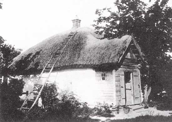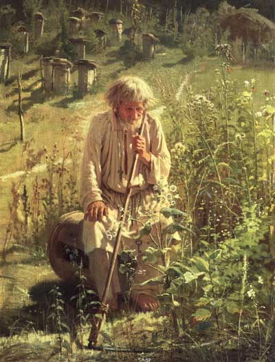 С любовью вспоминает Крамской серенькую обстановку, в которой протекло его детство. Вся семья, состоявшая из пяти человек, ютилась в небольшой собственной хатке, выходившей тремя окнами на улицу. При хатке разведен был сад, где росла большая, густая вишня с раздвоенным стволом, игравшая немалую роль в детских воспоминаниях художника. Соседями с правой стороны были братья Крупченко, большие любители музыки. Оттуда часто доносились звуки хорового пения, скрипки и флейты. Особенно восхищала Ваню флейта. Иной раз вечером или среди тихой, теплой украинской ночи один из братьев наигрывал в саду, а маленький, худенький Ваня с умными серыми глазками, носивший в своей детской груди сердце, уже тогда открытое для всего прекрасного и высокого, для света и добра, подолгу слушал, затаив дыхание, и на другой день с раннего утра забирался на свою любимую вишню и там старался подражать на гребенке очаровавшим его звукам. Тут впервые зародилась в душе его любовь к музыке, которую он сохранил и в зрелом возрасте; в это же время обнаружились и зачатки любви к пейзажу. Уже тогда, в эти ранние детские годы, поражали ребенка переливы света на деревьях, игра солнечных лучей на поверхности замерзших лужиц, длинные тени, ложившиеся на дорогу от тонких стволов берез, легкая рябь, пробегавшая по поверхности его любимой речки от внезапно подувшего ветерка… Когда возникла у него любовь к живописи, Крамской в точности не помнил, но уже семи лет он рисовал все, что ему попадалось, и из глины, которую брал у себя в погребе, лепил казаков наподобие тех, которых видел скачущими во весь опор по улице, – что очень ему нравилось и даже возбуждало невинное чувство зависти.